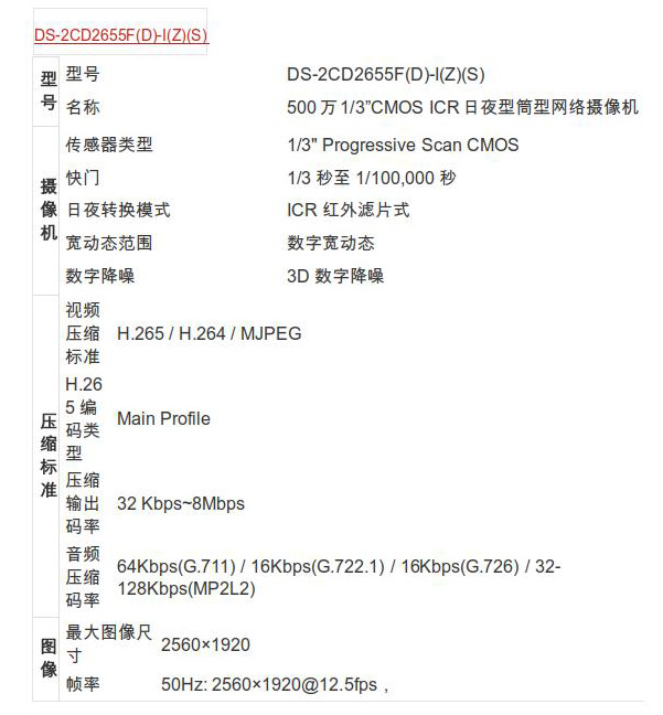 监控装置摄像头:DS-2CD2655F(D)-I(Z)(S)